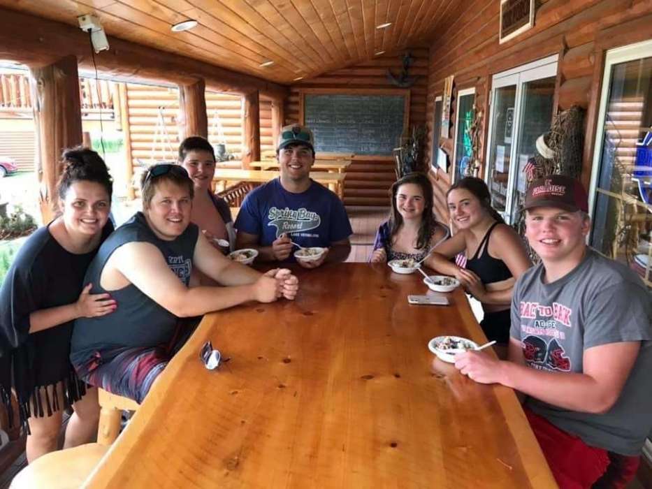 Our central Lodge and Grill offers a convenient meeting space to gather your group in the beautiful northwoods interior of pine log and stone fireplace with gorgeous views of Moose Lake. The Lodge also functions perfectly for meals or coordinating activities.